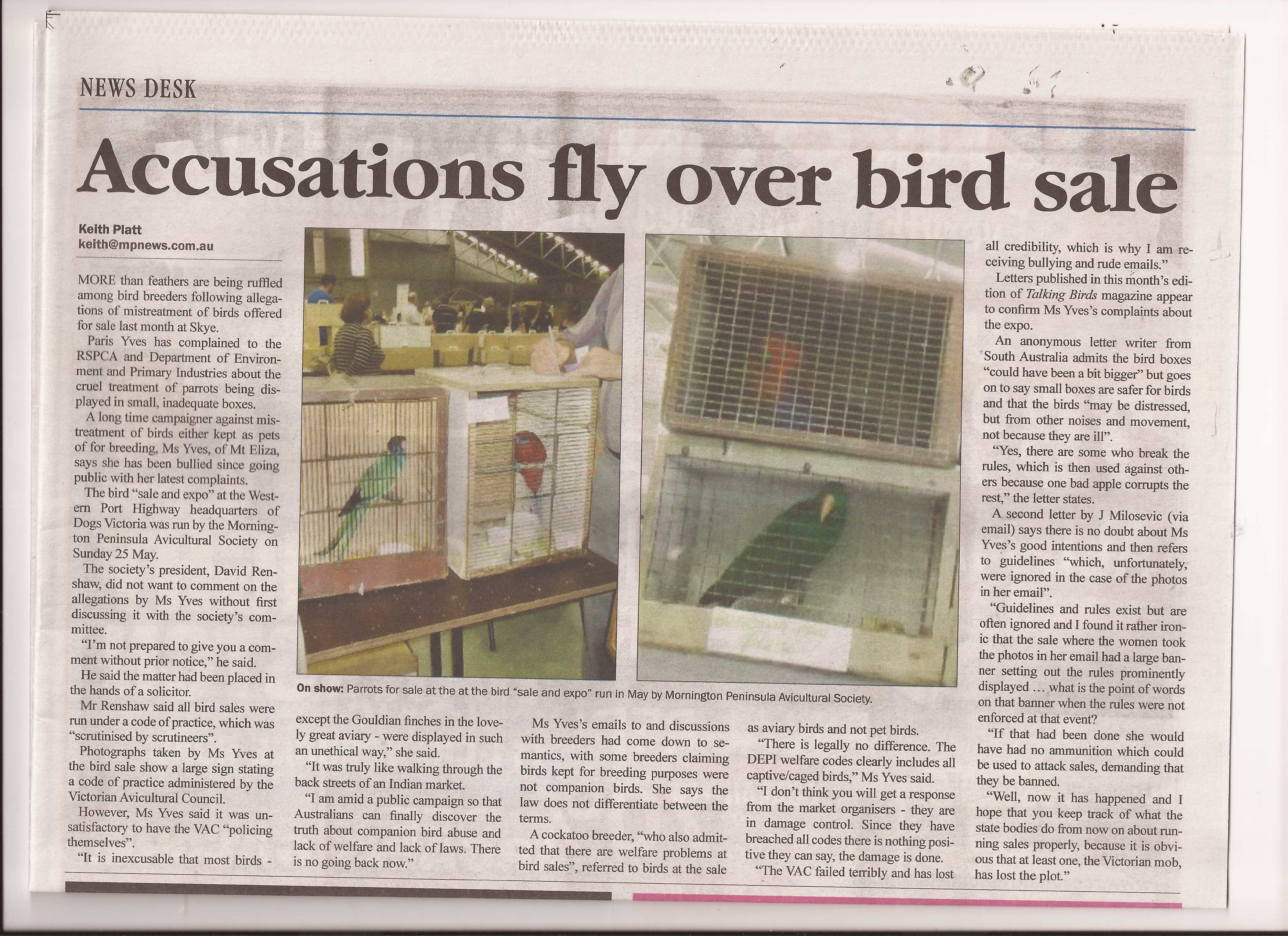 eclectus in small dirty box and rusty cages pdf Newspaper article