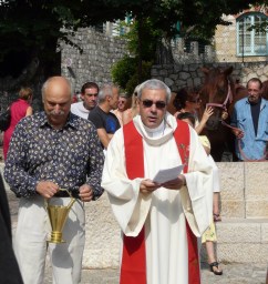 The ‘blessing’ is usually held in front of the old elm tree but because there were so many horses this year it was held in the centre of the square.